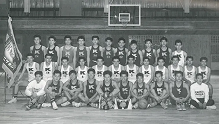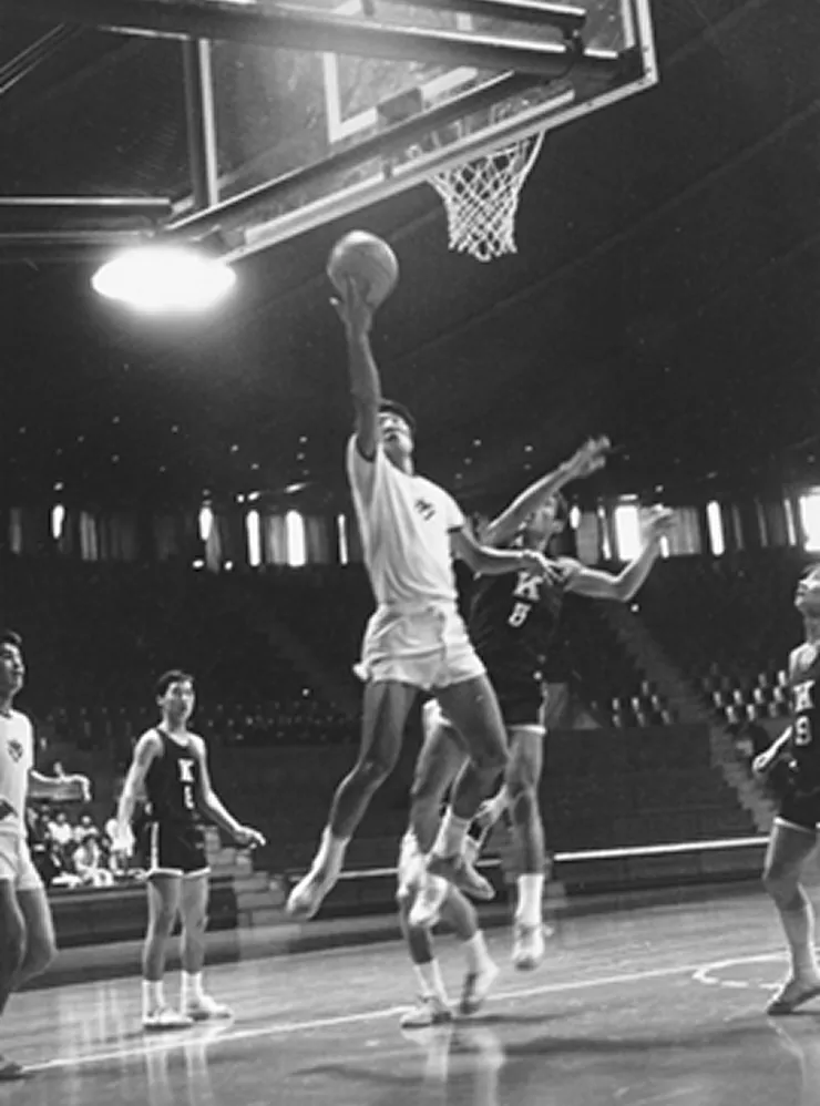 日々鍛錬して2年生で迎えた昭和44年の関西学生バスケットボール新人戦。たった6人で試合に臨んだ。